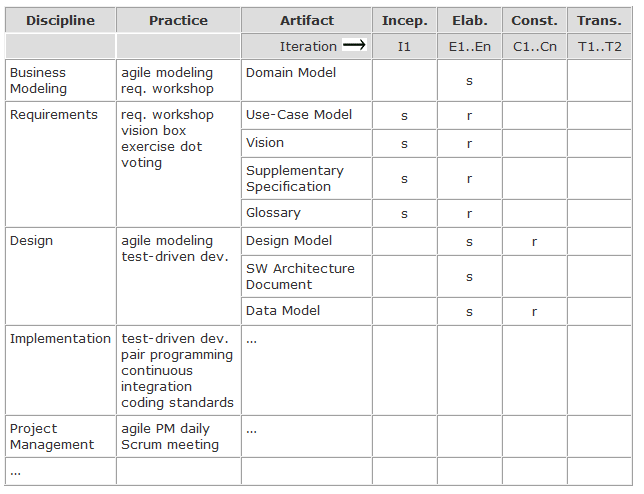 - 任务初始阶段=需求阶段,细化阶段=设计阶段,构造阶段= 实现阶段。