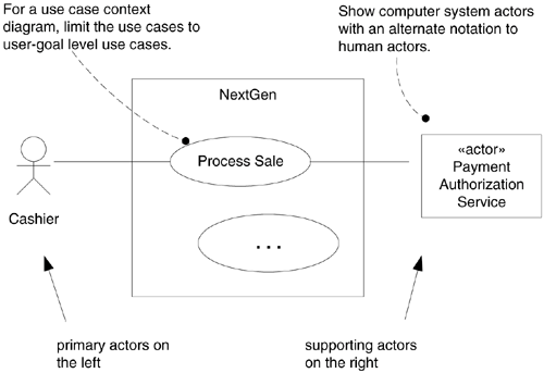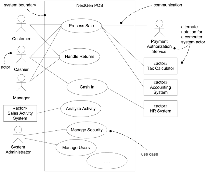 处理销售用例中的主要参与者为什么时收银员,而不是顾客?其答案和所设计系统的边界,以及我们设计系统的主要对象有关。